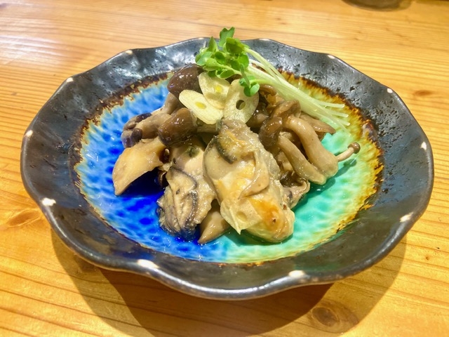 国産のカキと色々キノコをソテーし、にんにくと共にオリーブオイルで漬けにしました!