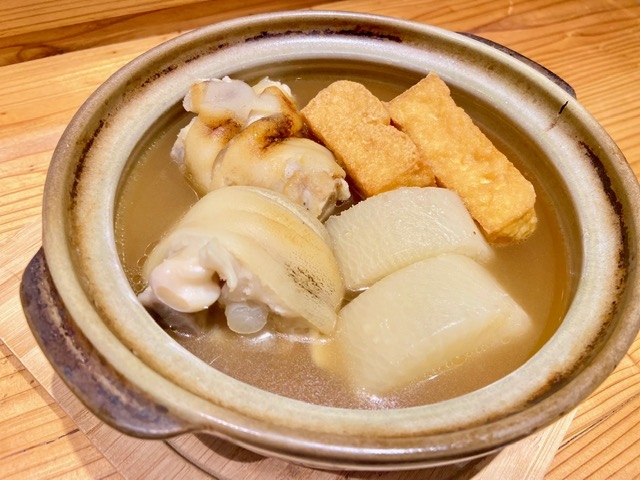 やわらかく炊いた旬の大根とてびちを、あっさり味のおでんにしました!