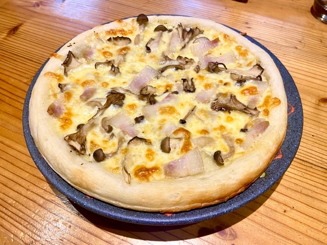 自家製のスーチカーと旬のキノコを合わせシンプルなピザにしました!