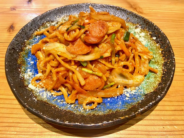 沖縄そばをケチャップ味の焼きそばにし、ナポリタン風にしました!