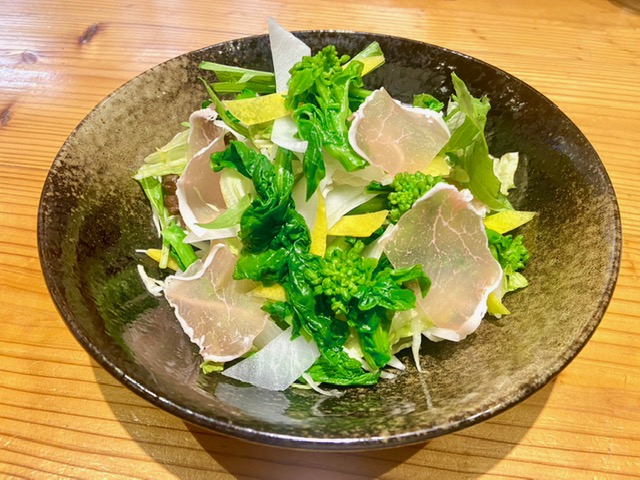 旬の菜花と大根を生ハムと合わせサラダにしました!